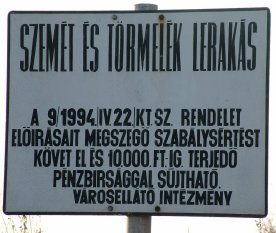 Szerencsés hazatérés után telefon a Közterület Felügyelet vezetõjének. Idõhiány miatt a találkozó nem jön létre. Javaslatára személyes találkozó Csányiné dr. Bakró-Nagy Vera aljegyzõvel, aki készségesen tájékoztatott, hogy amennyiben a lakosok bármilyen illegális lerakatokat észlelnek, azonnal jelentsék a Városellátó Intézménynél. Itt a kompetens Varga Sándor intézményvezetõ, ill. Kiss Ferenc. (Polgármesteri Hivatal udvarában.) Miért fontos ez? Amikor az elhagyott szemét még friss, könnyebb kideríteni a tulajdonosát, aki ellen akár szabálysértési eljárást is lehet indítani. Késõbb már elkophatnak a nyomok, magyarázza az aljegyzõ aszszony.