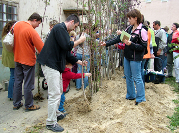 A Városellátó Intézmény mûszaki vezetõje, Balogh Gyöngyi cédrus, kõris, berkenye, juhar és vérszilva facsemetéket adott át a szülõknek, és látta el õket az ültetéshez hasznos tanácsokkal.