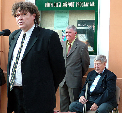 Trogmayer Ottó ny. múzeumigazgató mondandóját képileg három gombolyagba kötötte. Az első a statika, amellyel a hagyományos köztéri szobrok mozdulatlanságára utalt. Mint fogalmazott, csak kevesen tudták jól mozdulatokra kényszeríteni alkotásaik hősét, a régi nagyságok közül Medgyessy Ferencet és Varga Imrét nevezte meg. Majd nyugtázta dr. Csíky Lászlónak is sikert megbírkóznia a nehéz feladattal.