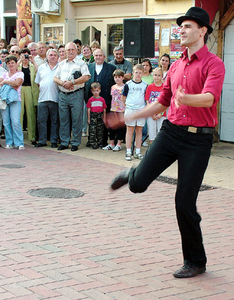 Tánc a sétálóutcában – Táncoló székely a „szoborvostól”