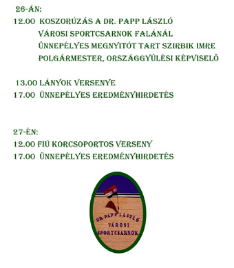 A mellékelt program szerinti mérkőzésekre kerül sor a dr. Papp László Városi Sportcsarnokban március 26-27-én. (Az ismertető kinagyítható!)