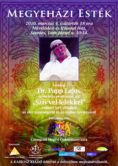 Holnap este 6 órakor az ifjúsági házban Dr. Prof. Papp Lajos szívsebész előadására várják a közönséget a szervezők. (A mellékelt plakát kinagyítandó!)