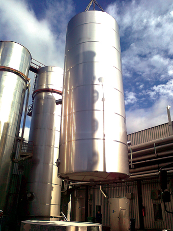 – Az építkezés folyamán a termelõ részek kivitelezését sürgettük elsõdlegesen, ezért október elején már az új üzemben indulhatott a termelés. Rögtön sikerült egy olyan méretû tartály gyártására szerzõdnünk, amihez elengedhetetlenül szükségesek voltak az új üzemben megépített darupályák és híddaruk. December elejére elkészült az eddig gyártott legnagyobb méretû tartályunk (képen), amely egy százezer literes, hõszigetelt keverõs tejsiló. A beruházás szükségszerûsé- gét és idõszerûségét ez a megrendelés is alátámasztja.