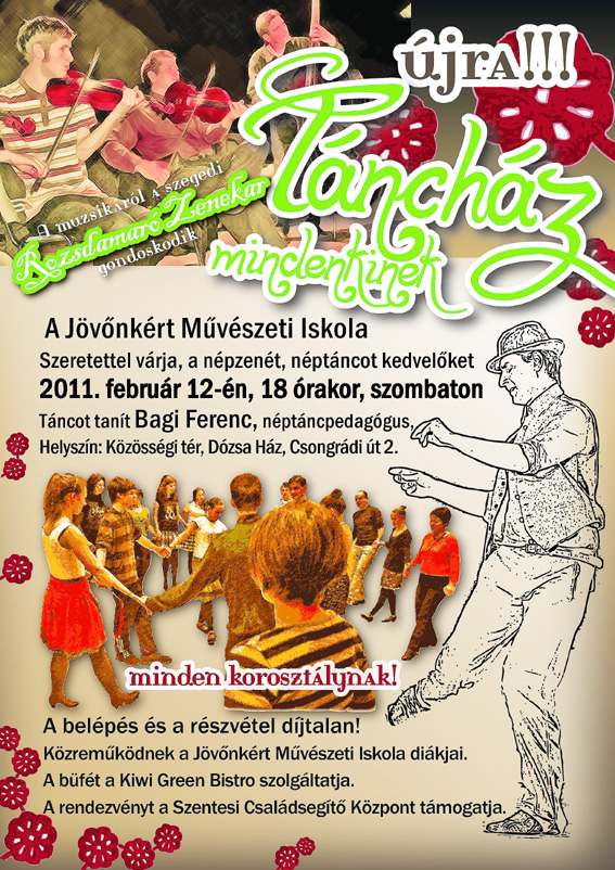 A Jövőnkért Alapfokú Művészeti Iskola igazgatója, Keller Jánosné és néptánc tanára, Bagi Ferenc a következő rendezvényükre várja a közönséget. (A plakát kingyítandó!)