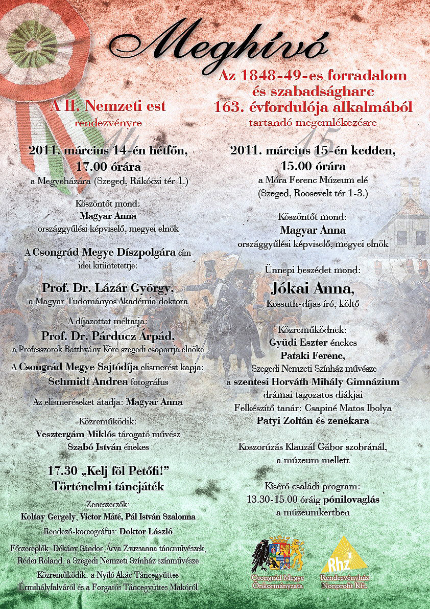 A mellékelt és alább közreadott plakátok kinagyításával a Szentes városi, a Csongrád megyei Közgyűlés által szervezett, valamint a Koszta József Múzeumban rendezett ünnepi programokról tájékozódhat.