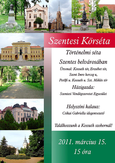 A Szentesi Vendégszeretet Egyesület március 15-én 15 órára várja az érdeklődőket ünnepi körsétájára. A mellékelt plakát kinagyítandó.