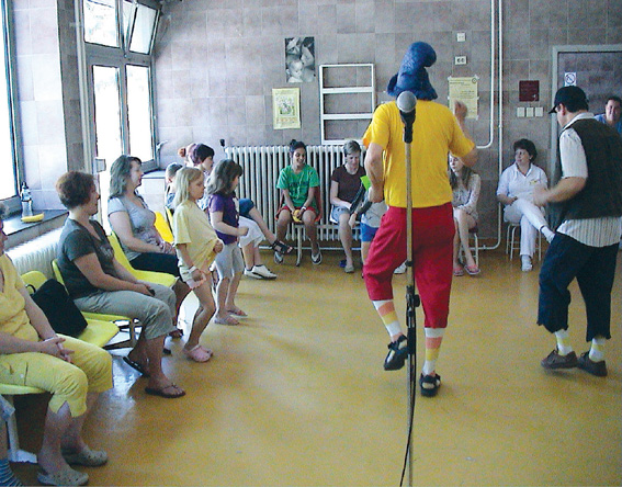 Immár hagyománynak tekinthetõ, hogy Gyermeknap alkalmából vidám mûsorral igyekszünk az éppen kórházban lévõ kisgyerekeknek kedveskedni, gyógyulásukat ezzel is segíteni.