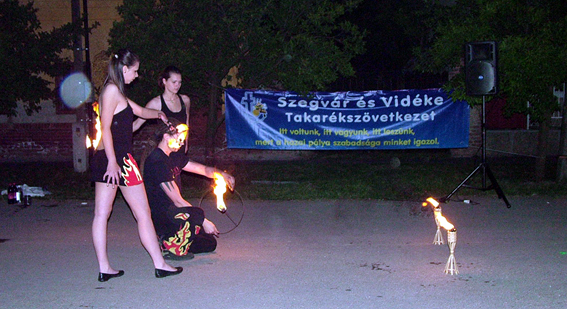 A gála fénypontja lesz Edward Maya produkciója, melyhez a show elemeket a szentesi Hestia Tûz és Fényzsonglõr csoport biztosítja – tájékoztatta lapunkat a csoport frontembere, Szûcs György, aki két csinos partnernõjével oldalán, húsznál is több eszköz használatával töri meg a sötétséget, és kápráztatja el a közönséget akrobatikus show és fénylátvány elemekkel.