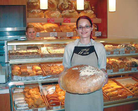 A kínálatban 60 féle finom péksütemény és 30 féle kenyér, köztük a barna, félbarna, magvas, tönköly, rozs és parasztkenyér szerepel. Itt mindenki megtalálja az ízlésének megfelelõt. Pékségünk vezérterméke a híres 3 kg-os parasztkenyér. A tulajdonos nagyon büszke a kézzel készített termékeire – sorolja Irénke.
