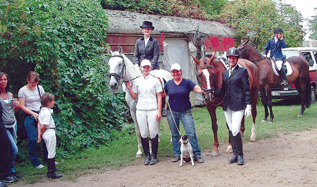 A Szent László Lovas Klub elnöke, Babinszky Zsuzsa (középen) 17 éve már azon fáradozik, hogy saját birtokán a fábiánsebestyéni út mellett versenyzésre alkalmas pályát alakítson ki, ahol tanítványaival fel tud készülni a különbözõ minõsítõ versenyekre, díjlovagló bajnokságokra. Legutóbb is egy nagyszabású verseny helyszíne volt a pálya. A városi lovas életre hamarosan visszatérünk.