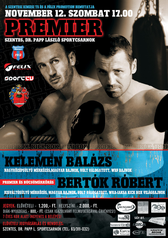 Bertók gõzerõvel készül a mérkõzésére, amely várhatóan az esti gála fõmérkõzése lesz. Az ellenfél kiléte eddig még nem került nyilvánosságra. A Félix Promotion névadója, Rácz Félix több ellenfél lehetõséget is felvázolt. Bármelyikükkel létrejöhet a küzdelem, ha sikerül a megegyezés a részleteket illetõen.