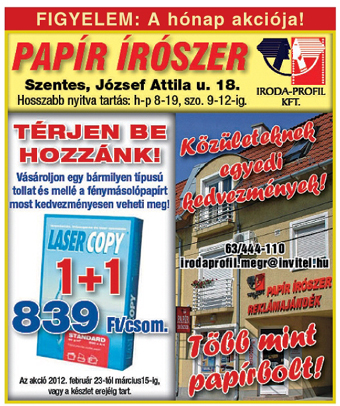 Ez a bejegyzés 2012 03 05 12:39-kor készült és a következő kategóriákban található: Keres-kínál, Újság cikkei. Minden hozzászólás követhető az RSS 2.0 hírforráson keresztül.