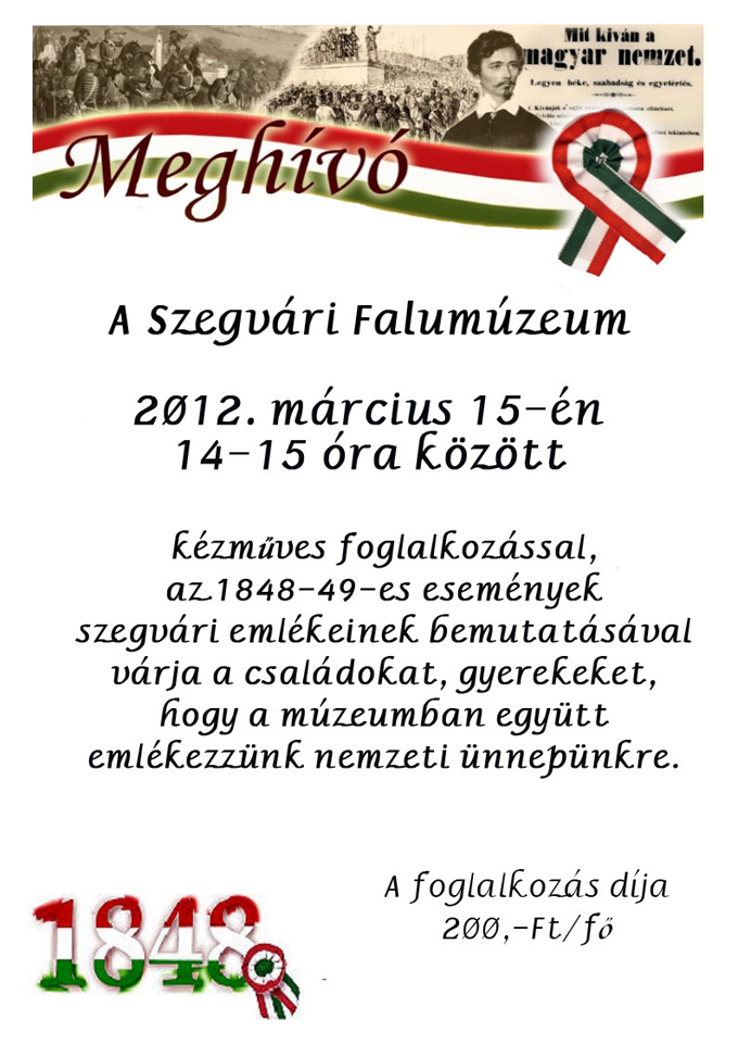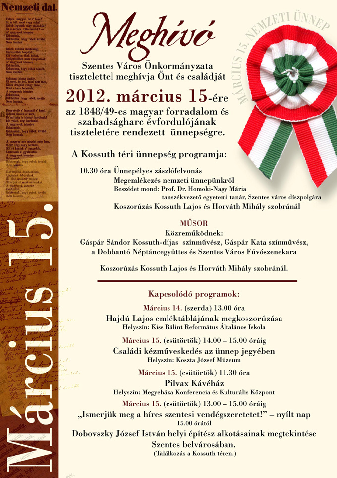 Szentes Város Önkormányzata és társ intézményei által az 1848/49-es forradalom és szabadságharc emlékére szervezett programok kinagyítva olvashatók!