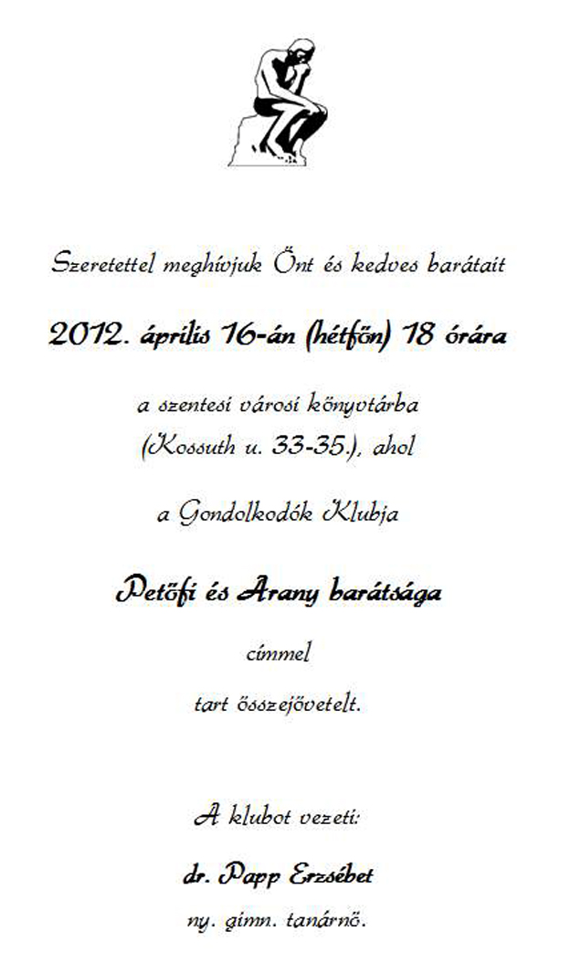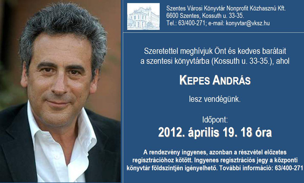 A jövő hét elején újabb összejövetelét tartja a gondolkodók klubja, majd városunkba látogat a neves tévés személyiség, Kepes András. A programok részletei kinagyítás után olvashatók alább: