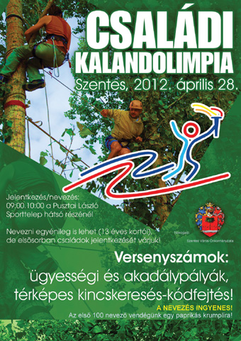 Szentesen ismét megrendezik a tavaly nagy sikert aratott Kalandolimpiát, amely idén a “Családi kalandolimpia” nevet viseli. A szervezõk ezzel az elnevezéssel jelezték, hogy nem csak egyéni nevezõket várnak, hanem várják azokat a családokat, amelyek szeretik a játékos és izgalmas feladatokat, kalandokat. Az idén is lesz többféle akadály- és ügyességi pálya, paint ball célba lövés, lovagi feladatok és természetesen térképes kincskeresés. A rendezvény helyszíne a szentesi Pusztai László sporttelep lesz. Nevezni egyéniben 14 éves kortól, kísérõvel, vagy családdal viszont nincs korhatár megkötés. A szervezõk mindenkit várnak erre az eseményre, amelyre a nevezés ingyenes, és amelyen az elsõ 100 induló ajándék ebédet kap majd.