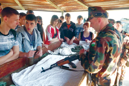 Egy rövid buszozás után a tanulók megérkeztek a lõtérre, ahol elmondták nekik a lõtéren betartandó szigorú szabályokat, majd a lövészetet vezetõ tiszt kijelölte számukra, mely részeken mozoghatnak. A diákok láthatták a gépkarabéllyal illetve pisztollyal végrehajtott lõgyakorlatot. Közben hasznos információkkal gazdagodtak az éppen zajló eseményekrõl, illetve kérdéseket is kaptak.