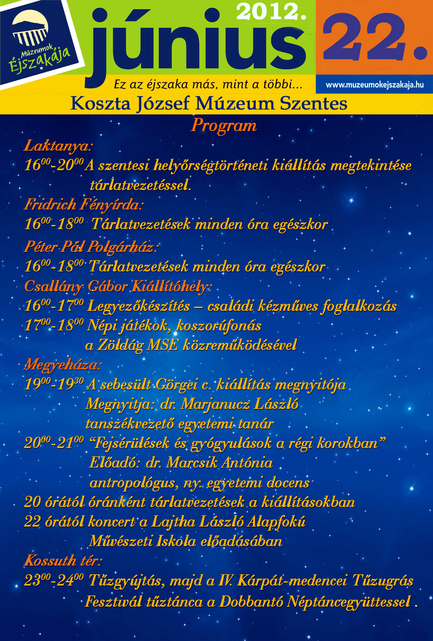 A Múzeumok Éjszakája rendezvénysorozat helyi programjai