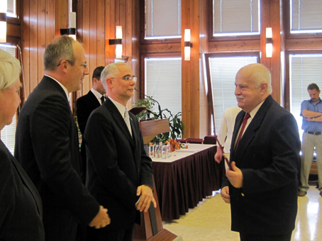 Előbb dr. Várkonyi Katalin főigazgató és dr. Gyenes Ágota orvosigazgató köszöntötte dr. B. Nagy Zoltán szülész-nőgyógyász főorvost, aki június 27-én vehette át Budapesten az Emberi Erőforrások Miniszterének Díszoklevelét. Majd dr. Várkonyi Katalin és dr. Gyenes Ágota elismeréseket adott át a kórházi ünnepségen.