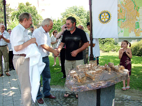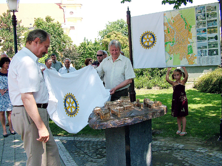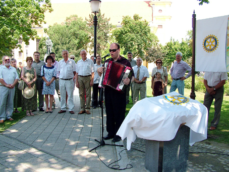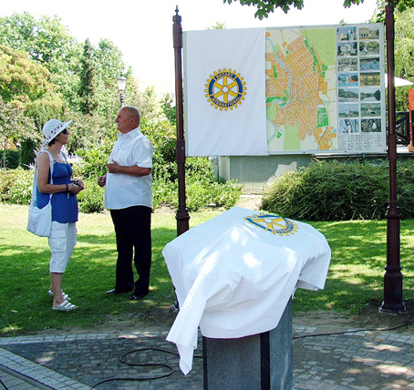 A jelenlévőket Mészáros Zoltán a Szentes-Csongrád Rotary Club leköszönő elnöke üdvözölte és az alábbiak szerint ismertette a Club törekvéseit, a művészeti alkotás megszületésének előzményeit.