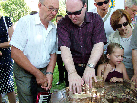 A Szentes-Csongrád Rotary Club tegnap délelőtt avatta fel Szentes város főterén a tapintható térképet. A Máté István és felesége által bronzból készített sajátos térplasztika a Rotary Clubbok történetében immár a tizenkettedik. Azt is megtudtuk, hogy jövőre a csongrádiak főtere is tapintható lesz, hogy a vakok és gyengénlátók is közelebről megismerhessék a települések legszebb épületeit, nevezetességeit.