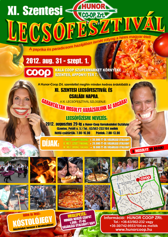 – Igen, aki most legalább 2000 Ft-ért vásárol a Kála áruházban, az sorsoláson vesz részt. Egy szerencsés család elutazhat Mezõkövesdre egy családi wellness hétvégére. De idén is díjazzuk a legötletesebb fõzõket, a legszebben díszített asztalokat. Döntse el a szerencse, hogy mely csapatok nyernek még értékes ajándékokat. Idén is lesz kóstolójegy, amelynek bevételét fele részben a Szentes Kistérség Mentõszolgálat Alapítvány, másik felét a Hunor Hivatásos Katasztrófavédelmi Mentõszervezet kapja. Az óriás bográcsban azért fõ a lecsó, hogy bárki megkóstolhassa, az is, akinek nem áll módjában fõzni.