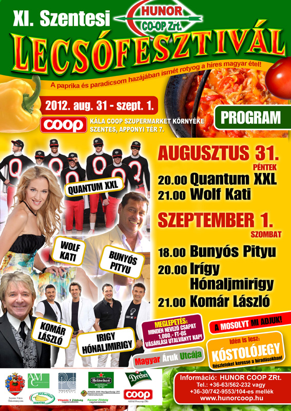 A Hunor Coop Zrt. rendezésében augusztus 31-én és szeptember 1-én tizenegyedik alkalommal kerül sor a Szentesi Lecsófesztiválra. Túl a rendezvény elsõ évtizedén, Mészáros Zoltán vezérigazgatótól azt kérdeztük, mit gondol a rendezvény jövõbeni újdonságairól, egyáltalán vannak-e fejlesztési alternatívák, lehetõségek?