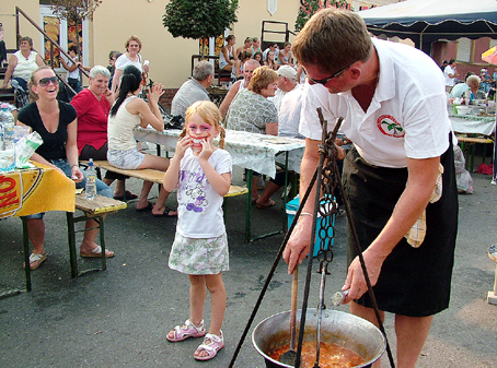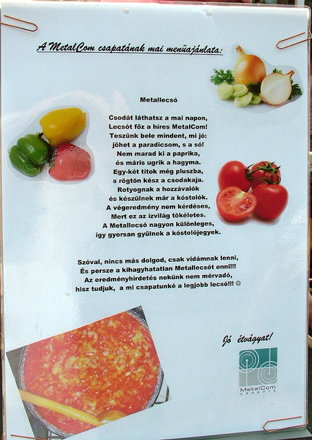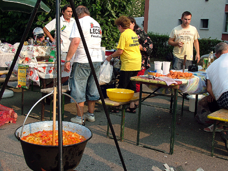 Aztán sokan a beltartalom mellett a külsőségekre is nagyon odafigyeltek. Volt, aki hirdette fennen: ” A fehér bort tisztán, a vöröset piszkosul szeretem.” A rafinált főzők köre sem bizonyult csekélynek, előbb valamiféle pörkölt főtt, majd később azért a lecsónak való is a bográcsba került. A Központi Gyermekélelmezési Konyha „Lecsókolom” csapata kelt tésztából „írta” asztalára a rendezvény nevét, és boszorkányos nevetéssel adták mindenki tudtára, ők bizony még lufihajtogatással is készültek.