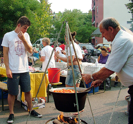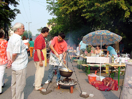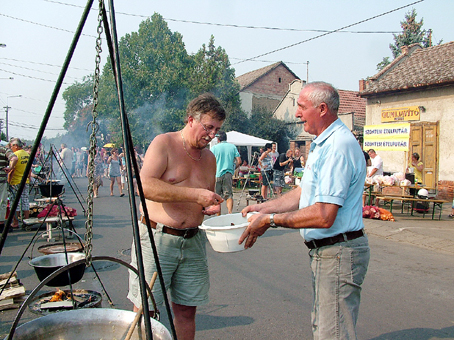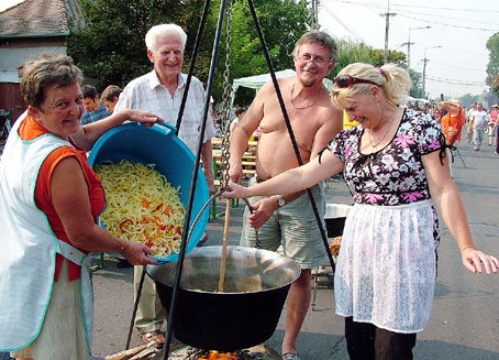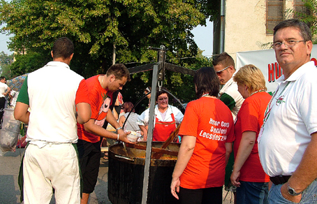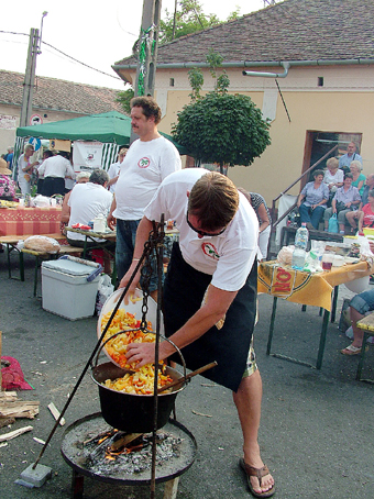 Szlovákiából, a 900 lelkes Bodrogszentesről érkezett egy népesebb delegáció, akik saját készítésű lecsójukhoz minden szükséges alapanyagot magukkal hoztak. Liszkai Gusztáv polgármester immár hetedik éve irányítja a települést, azt mondja, szívvel-lélekkel kell főzni, ez az igazi titka náluk is ennek a régi magyar ételnek. A színmagyar kis közösség augusztus 20. előtt egy héttel tartja a falunapokat. Náluk a gasztronómiai attrakció a gulyásfőzés, amikor legalább kétszáz liter ételt osztanak szét ingyenesen a résztvevők között.