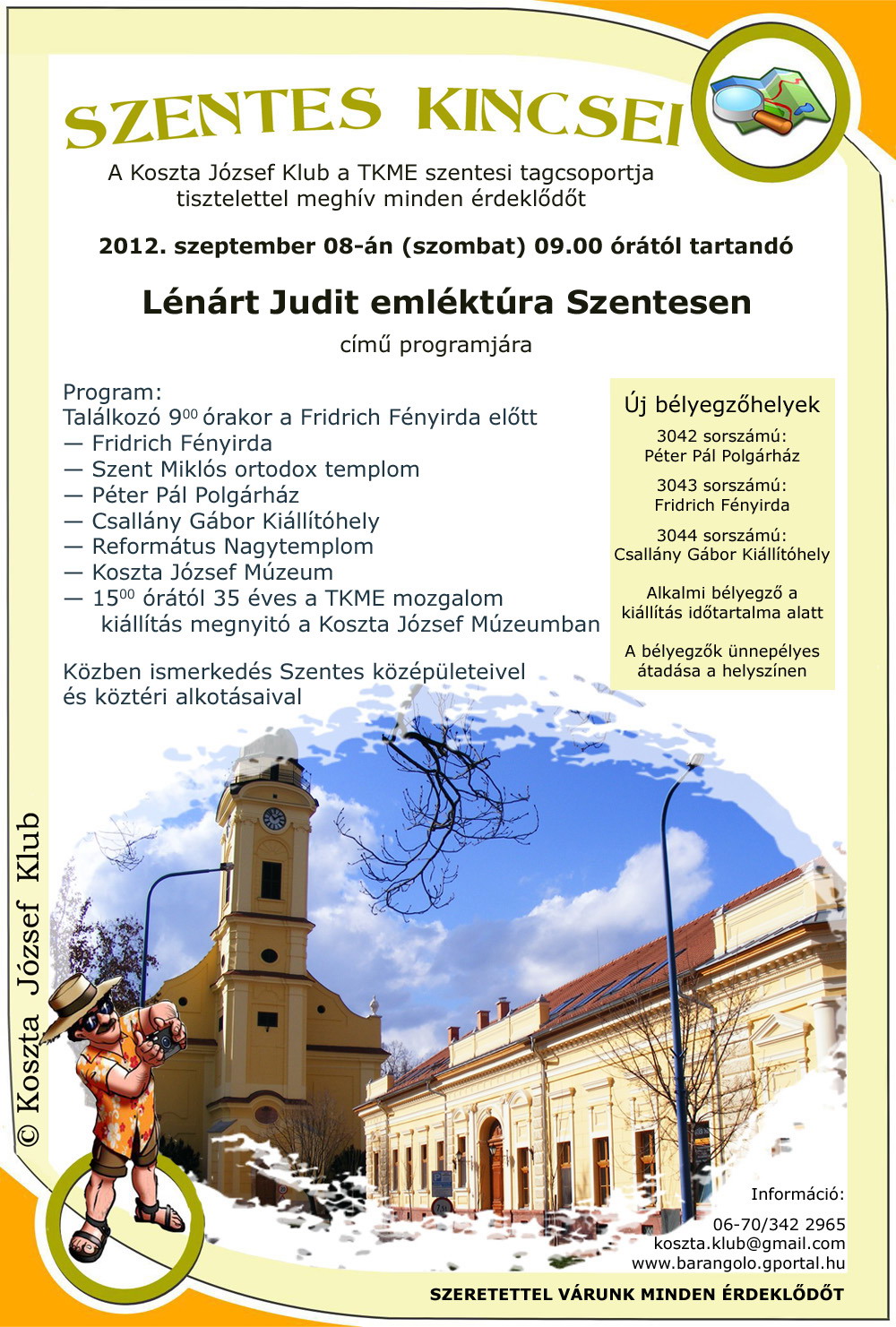 A Koszta József Klub, a TKME mozgalom szentesi csoportja szeptember 8-án ünnepli a mozgalom fennállásának 35. évfordulóját. Ez alkalomból rendezi meg a Lénárt Judit Emléktúrát. A programokat nagyítás után olvashatja!