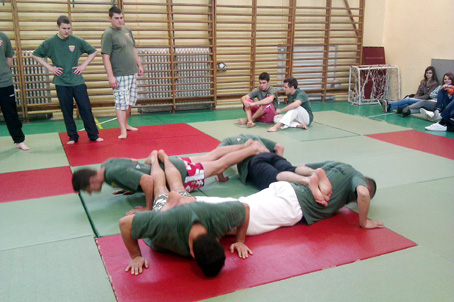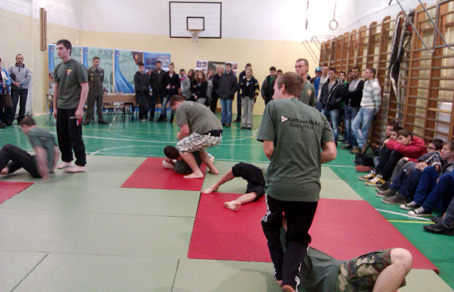 Ezen a rendezvényen vett részt az MH 37. II. Rákóczi Ferenc Műszaki Ezred három tagja, akik immár negyedik éve az iskolával kötött együttműködés keretében tanítanak katonai önvédelmet és katonai alapismereteket a KatonaSuli programba jelentkező diákok számára. A 14-i délelőtt alkalmával óránként nézhették végig a képzés iránt érdeklődők Mészáros János törzsőrmester és tanítványi önvédelmi és erőnléti bemutatóját, valamint hallgathatták meg a négyéves képzésről, a bekerülés feltételeiről és az érettségi illetve a katonai pályán való továbbtanulás lehetőségeiről szóló tájékoztatóját Kollár László törzszászlósnak és Sipos Katalinnak, akik a KatonaSuli program felelősei. A színes bemutatóra egyébként nemcsak a leendő tanulók és azok szülei voltak kíváncsiak, de a látványosság és különlegesség miatt sok iskolatárs is belopódzott.