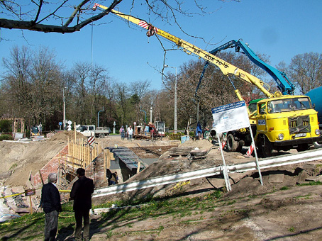 A téglaboltíves híd eredeti tervei nem álltak rendelkezésre, de acél zártpallós megoldás került a mostani tervbe. Ezen azonban változtatni kellett, mivel így is 80 m3 törmeléket távolítottak el az átépítés során. A Kurca megemelkedő vízszintje is komoly gondot okozott, emiatt háromszoros magasításra, ahoz mintegy 12 ezer m3 homokra volt szükség, ám a boltív vasbetonszerkezete mára elkészült. A mai nap a betonozás vette kezdetét – tudtuk meg Bődi Jánostól.