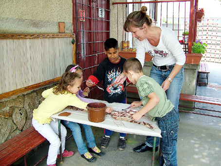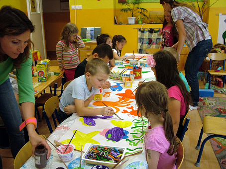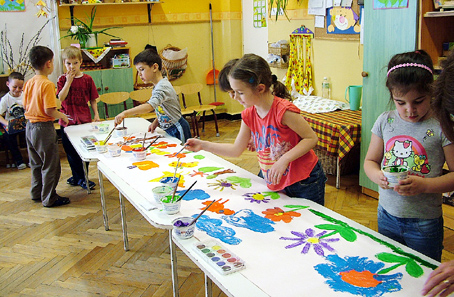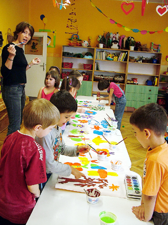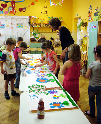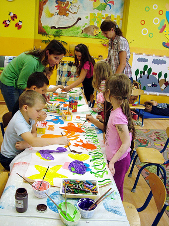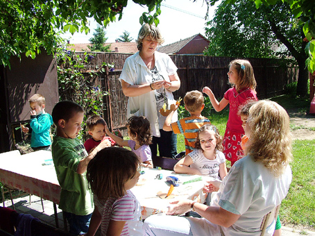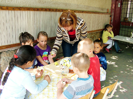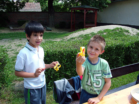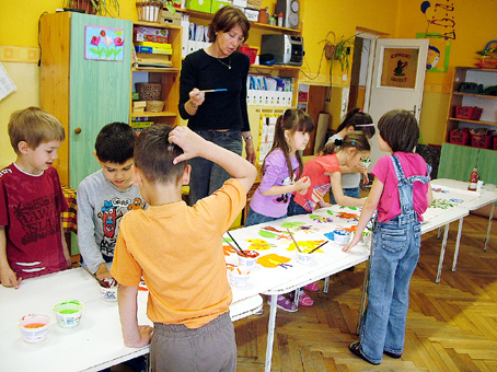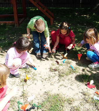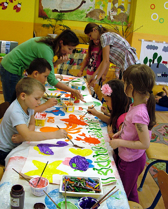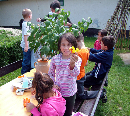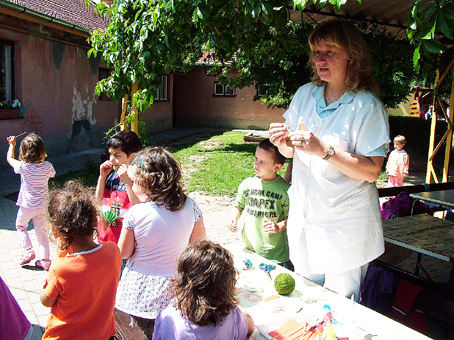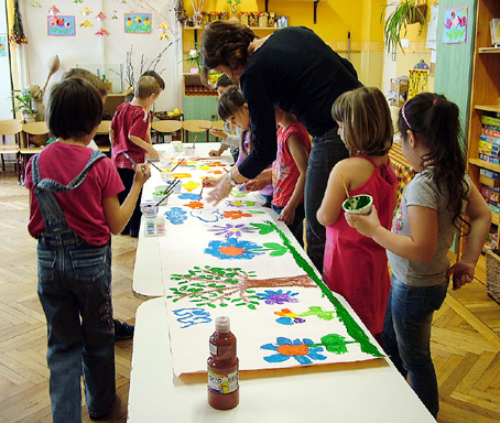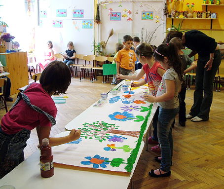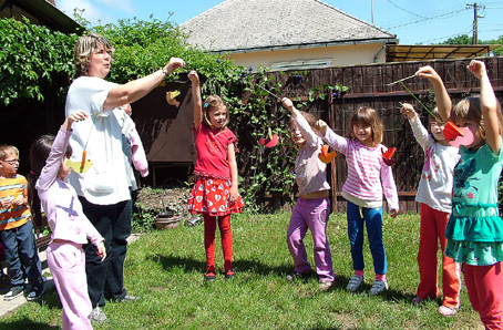 A Szent Anna utcai „Csicsergő” Óvoda Kisvakond és Katica csoportja vett részt tapéta csíkok festésében. Temperával dolgoztak a nagy és nagy-középsős gyerekek. A témákat a természetből merítették, fák virágok, napocskák és állatkák kerültek az ecsetek nyomán a csíkokra. Azokkal azután az óvoda kerítését díszítették. Ezzel hívták fel a figyelmét a járókelőknek a madarak és fák napjára. Következzenek további képeink.