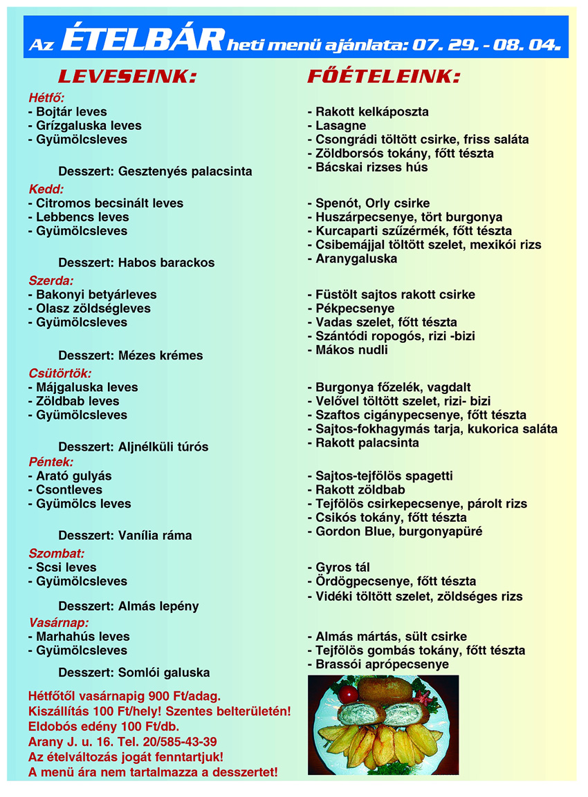 A következő héten is változatos ételek közül választhatunk az Ételbár étlapjáról. Tegye meg most!