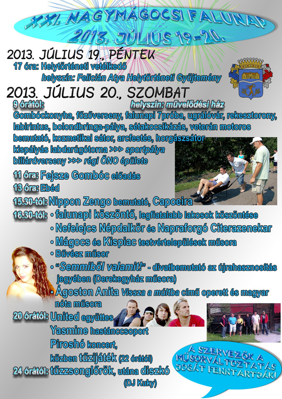 A United, Péli Barna és csapata is szórakoztatja a nagymágocsiakat a hétvégén. A hagyományos falunap ezúttal is több gasztronómiai programot tartalmaz. A helyiek számos kulturális és szórakoztató látnivaló közül választhatnak.