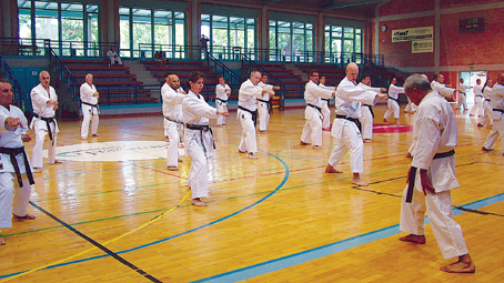 Az országos szövetség alapítója, Rostás Tibor Budapesten saját klubbot is mûködtet, azonban mivel a rendõrségi munkatársakat önvédelemre oktatja, pontosan tudja, miben más a kétfajta harcmûvészet. Elmondta, hogy 5 megye 24 egyesületébõl érkeztek karatésok a szentesi táborba. A sportcsarnokkal és a fürdõvel együtt a várost azért kedvelik, mert nyugodt és csendes, remek szállás és ellátás biztosított a sportolók számára. A tábor délelõtt, délután közös edzésekkel telt, majd ki-ki a saját, kezdõ vagy haladó szintjének megfelelõen kapott feladatokat, hogy jól felkészülhessen a szombati vizsgájára.