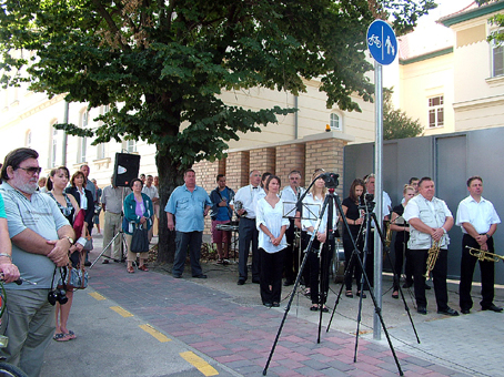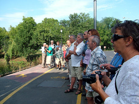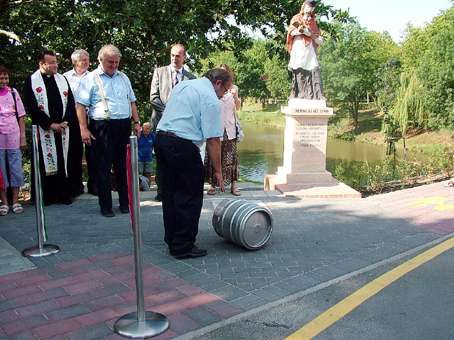 Ezt követően Szirbik Imre polgármester vágta át az avatást jelképező nemzeti színű szalagot, majd útjára indult egy hordó, teli sörrel, hogy a híd túloldalán tartalmát a jelenlévők jóízűen elfogyasszák.