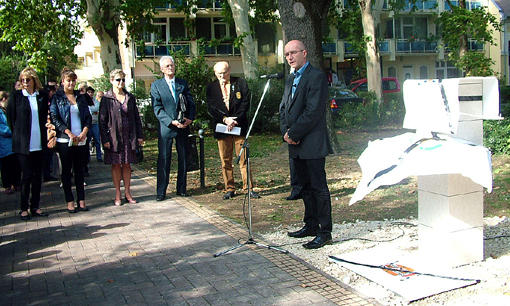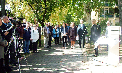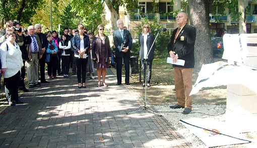 Szólt az alkotókról, a térplasztika elhelyezése szempontjából meghatározó sajnálatos eseményről és a Rotary céljairól. Arról, hogy Mészáros Zoltán club tag, korábbi elnök kezdeményezésére létesült a szentesi, majd a csongrádi térplasztika.