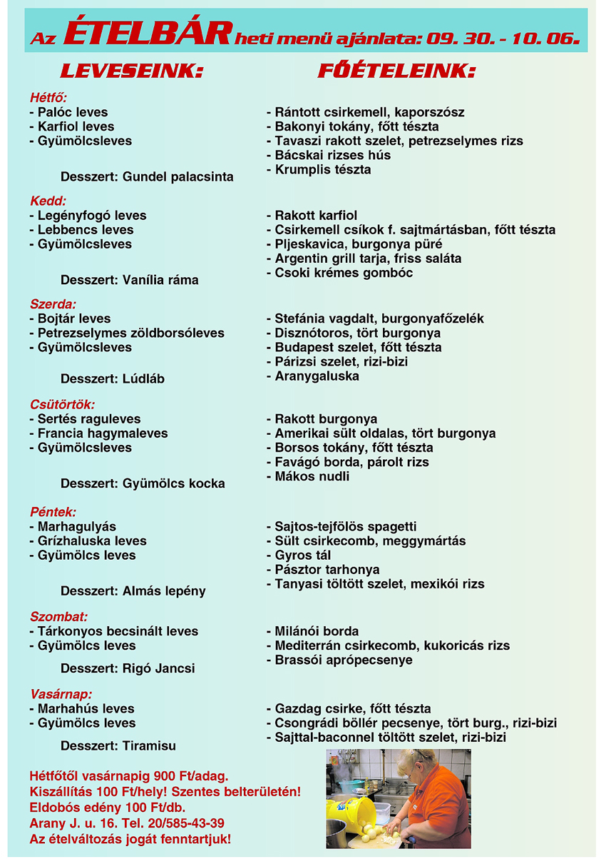 Az Ételbár aktuális menü ajánlata