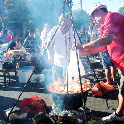 Aztán bográcshoz hívta tagjait több civil szervezet. A helyi Vöröskereszt vagy a SINOSZ lelkes szakácsai is kitettek magukért. Utóbbiak étele azért lett “törökös”, mert szívét, lelkét adta hozzá a készítõ Török házaspár. De valódi török lecsó, a Shakshuka hozzávalói is bográcsba kerültek. Tímárné Stabe-recz Teréz ötletgazda elõzetes próbafõzés után fogott a kihíváshoz, hiszen ebbe a különlegességbe többek között római kömény, vörösborecet és grillezett paprika is szükségeltetett. Az igazi zamatát azonban az adta, hogy több csapat összefogva õrködött a tûz körül. A csapatok általában legalább húsz, de nem ritkán ötven embert ültettek asztalhoz.