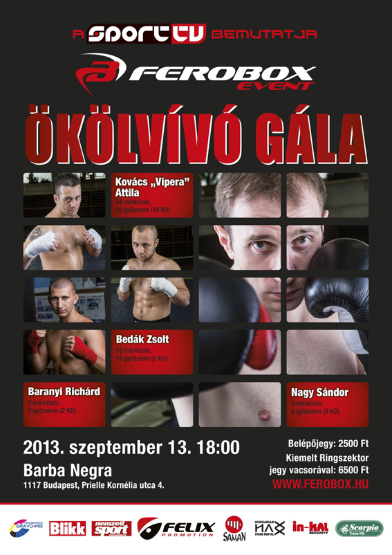 Szenzációs nap vár egyébként is az ökölvívás szerelmeseire, hiszen a budapesti Barba Negrában Kovács ‘Vipera’ Attila is magyar bajnoki címmecscsen bokszol, de szorítóba lép két ifjú tehetség, Bara-nyi Richárd és Baran Attila, valamint a csapat kispehelysúlyú kiválósága, Bedák Zsolt is megmutatja, hogy mennyire (nem) babonás. A fellépõ bokszolók szinte kivétel nélkül a magyar ranglista elsõ három helyén szerepelnek súlycsoportjukban.
