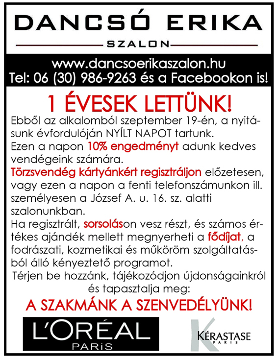 Szeptemberi aktuális hirdetéseink