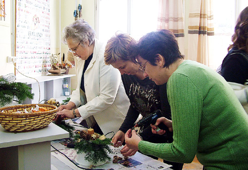 Ebben az intézményben ugyanis minden szerszám, kellék adott volt ahhoz, hogy a résztvevő neves személyiségek, térségi polgármester feleségek, civil szervezetek önkéntesei,vezetői, a történelmi egyházakat képviselő nagytiszteletű és lelkész asszonyok karácsonyi asztaldíszeket készítsenek. Később mézeskalács díszítésre is sor került. Ezeket az ajándékokat a Nagymágocsi Szociális Otthon és a Derekegyházi Ápoló Otthon lakói részére ajánlották fel.