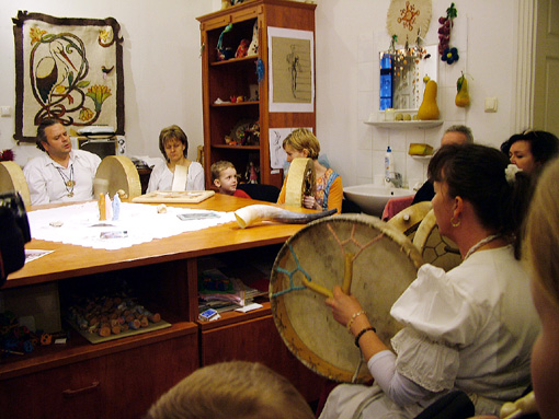 Volt itt minden, ami szemnek, szájnak kedvére való, kóstolhattunk rétest, csírákat, különféle teljes kiőrlésű lisztből készült pékárukat. „Belekóstolhattunk” a Fényesség Táltos Dobkör műsorába is és beszélgethettünk Kakuk Attilával. Ez a különleges ember különleges kapcsolatot teremtett a természettel, ún. komposztáló kazán segítségével tartja termőképesen saját kertjét, visszaadva haszonnövényei számára a természetes élet körforgását. Mintegy 5000 négyzetméteren gazdálkodik, példája egyre „ragadósabb” lakókörnyezetében.