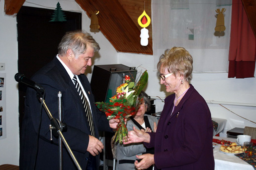 Elhiba Zsuzsanna ügyintézõ és Baranyi Ferenc elnök köszöntötte az ünnepségen megjelenteket. Takács Ferencné volt titkár visszaemlékezett az elmúlt évek legszebb eredményeire, történéseire.