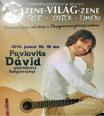 Pavlovits Dávid gitármûvész, tanár, zeneszerzõ lesz a Zene – Világ – Zene hangversenysorozat következõ vendége. Egy különleges ember, rendkívüli akaraterõvel, született tehetséggel, kétszer indult a muzsikusi pályán.