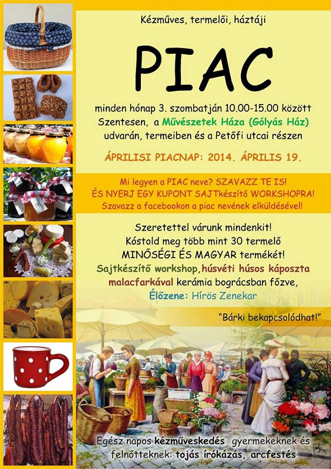 Elindult az élménypiaci program Facebbok oldala https://www.facebook.com/pages/Szentesi-Helyi-Termelõi-Piac/472886182823567. Ezen a linken is lehet jelentkezni, vagy kommentelni az egyes bejegyzéseket. A szervezõk számítanak ötleteikre, javaslataikra, hogy minél inkább a helyi igényekhez igazodva tudjon mûködni a Szentesi Helyi Termelõi Piac újszerû, kreatív kezdeményezés.