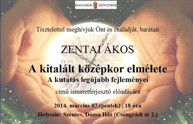 A kitalált középkor elmélete c. Zentai Ákos előadására hívja az érdeklődőket a Dózsa házba a Magyarok Szövetsége. Részletek a melléklet kinagyításával.