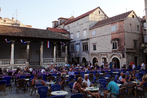 A napi többszöri fürdés, úszás mellett jártunk néhány fantasztikus városban. A városokon erõsen érzõdik az itáliai hatás. Igazi idõutazás Splitben, Trogirban, Sibenikben, Omisban és Primorstenben sétálni. Gyönyörû tornyok, órák, harangok, templomok, míves kapuk, rusztikus, zsalus ablakok bukkannak fel mindenhol. Az ember azokat a köveket koptatja séta közben az utcán, melyeket anno római uralkodók, magyar királyok vagy éppen velencei kereskedõk is.