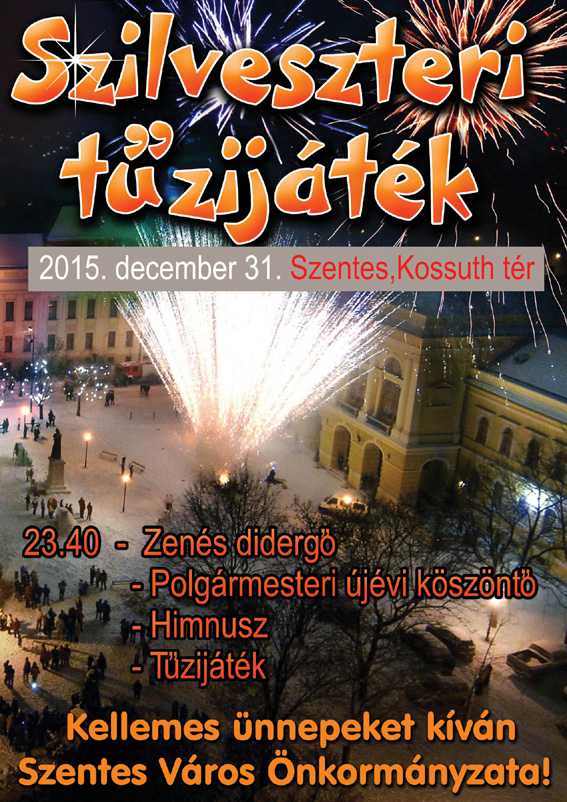 … is tartogatnak meglepetéseket. Szerdán az óév-búcsúztató ünnepi koncert, csütörtökön az éjféli tűzijáték nyújt kikapcsolódást a szentesiek számára. Íme a részletek:
