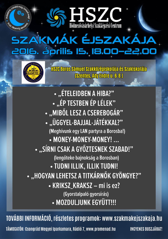 A Szakmák éjszakája keretében a város középiskoláiban az alábbi programokkal várják az érdeklődőket: